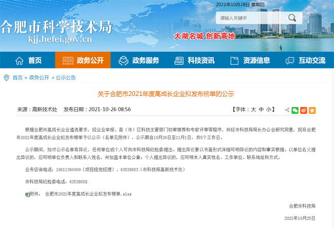 根據(jù)合肥市高成長企業(yè)遴選要求,經(jīng)企業(yè)申報、縣(市)區(qū)科技主管部門初審?fù)扑]和專家評審,并經(jīng)市科技局局長辦公會研究同意,安徽世綠環(huán)保科技有限公司成功入選合肥市2021年度高成長種子企業(yè),公示如下: