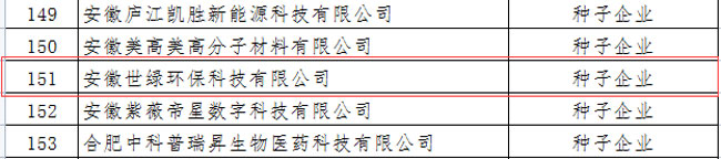 安徽世綠環(huán)保科技有限公司成功入選合肥市2021年度高成長企業(yè)